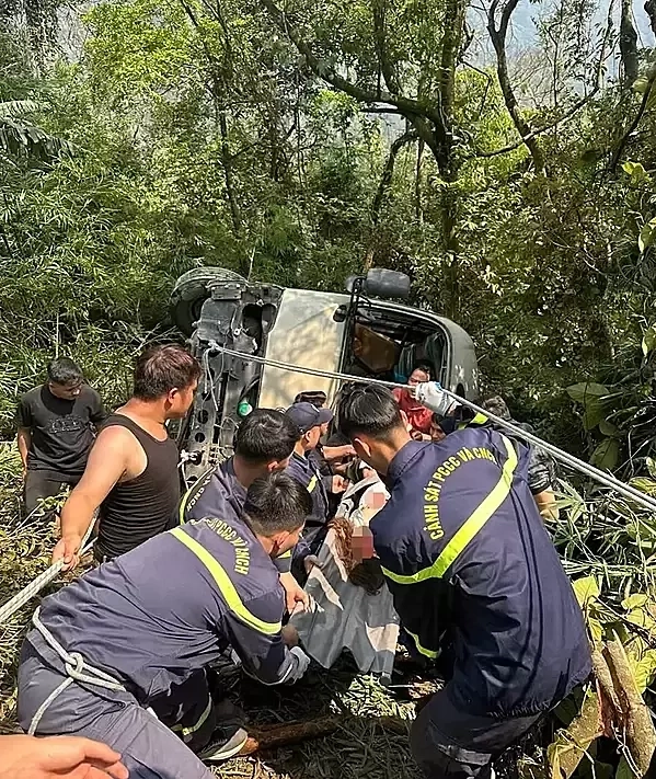 Trở về sau chuyến du lịch Tam Đảo, ôtô chở đoàn du khách Hà Nội rơi xuống vực sâu, ít nhất 7 người bị thương, chiều 29/3.