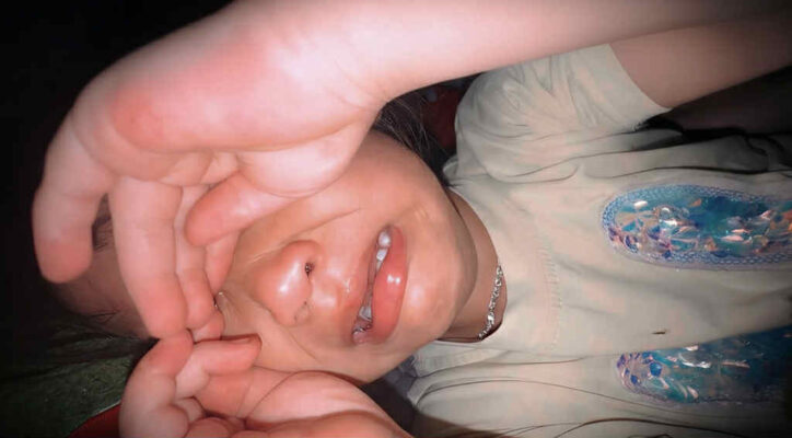 Cô bé úp mặt vào gối, đôi vai nhỏ run lên trong tiếng nấc.